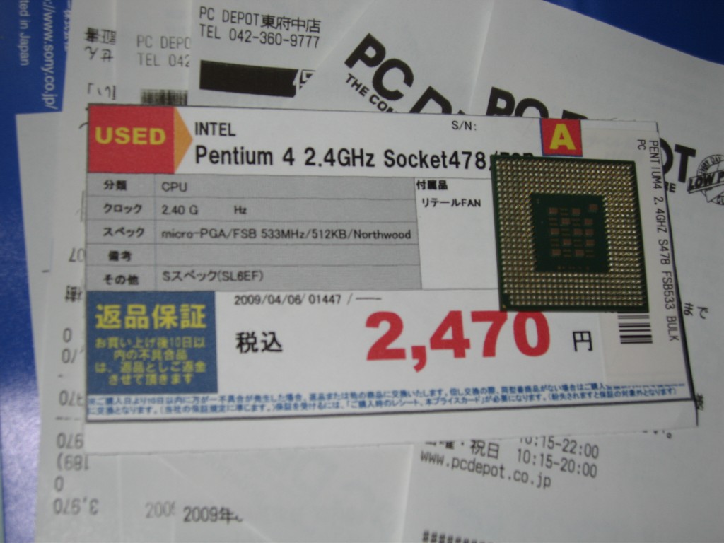 というわけで無事元通りに使えるマシンになりました。このPCを作った頃はCPUが3万円ほどかかったと記憶しているその上のCPUが5万円で手が出なかった。今度は同じものが2,470.-とはねー。
