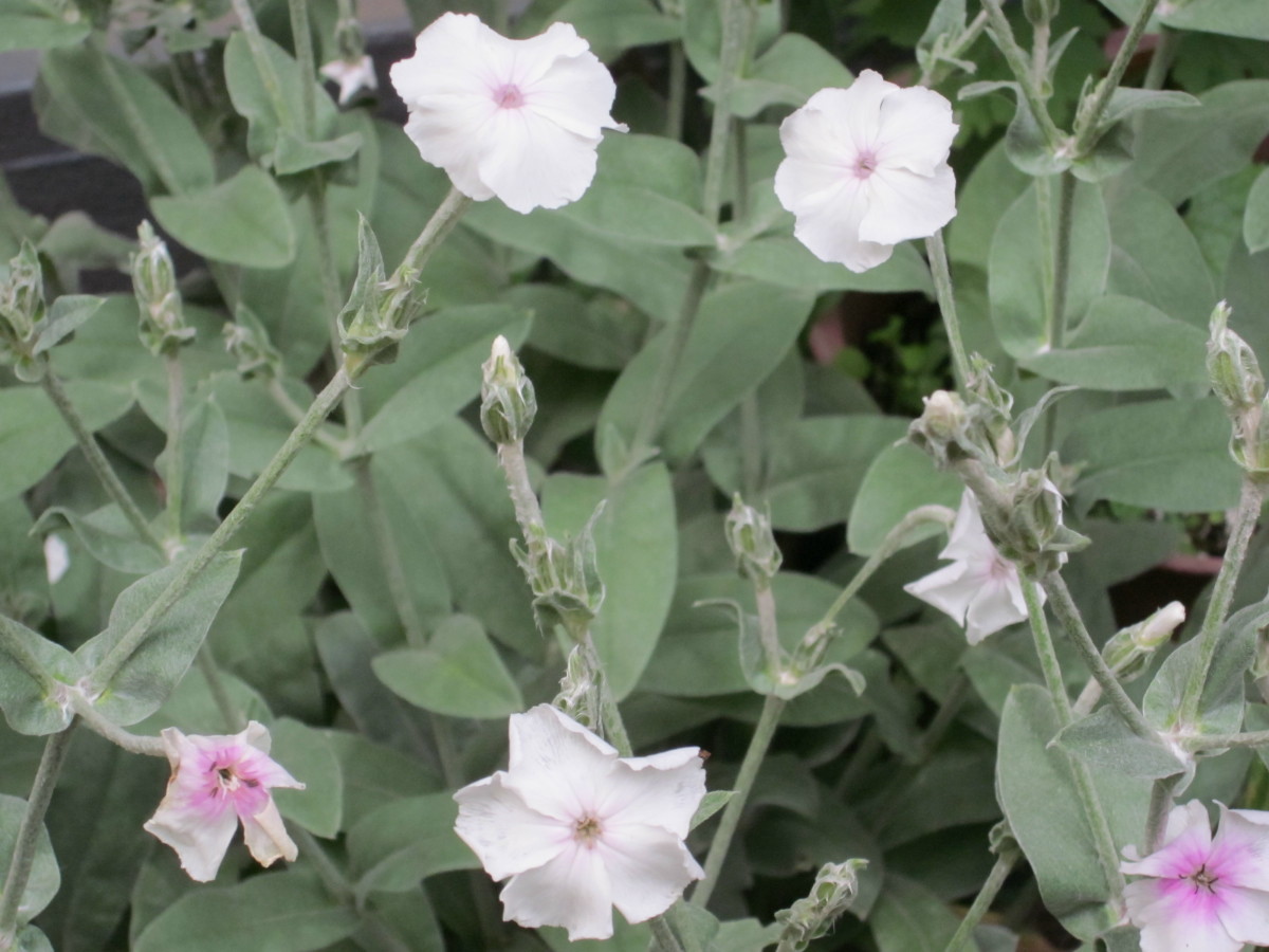「フランネルソウ」この雑草のような花が載ってたのにビックリ。白、赤、淡い日の丸のような3種類がなんでか育ってるんです。きっと小鳥が種を運んできたのでしょう。