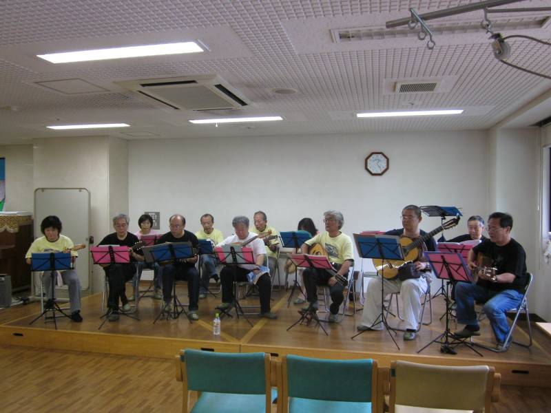 前回までの練習ではギターの音が聞こえてこない雰囲気、が今回は団体で聞こえてきて、思わずうれしくなってしまった。先輩方から、