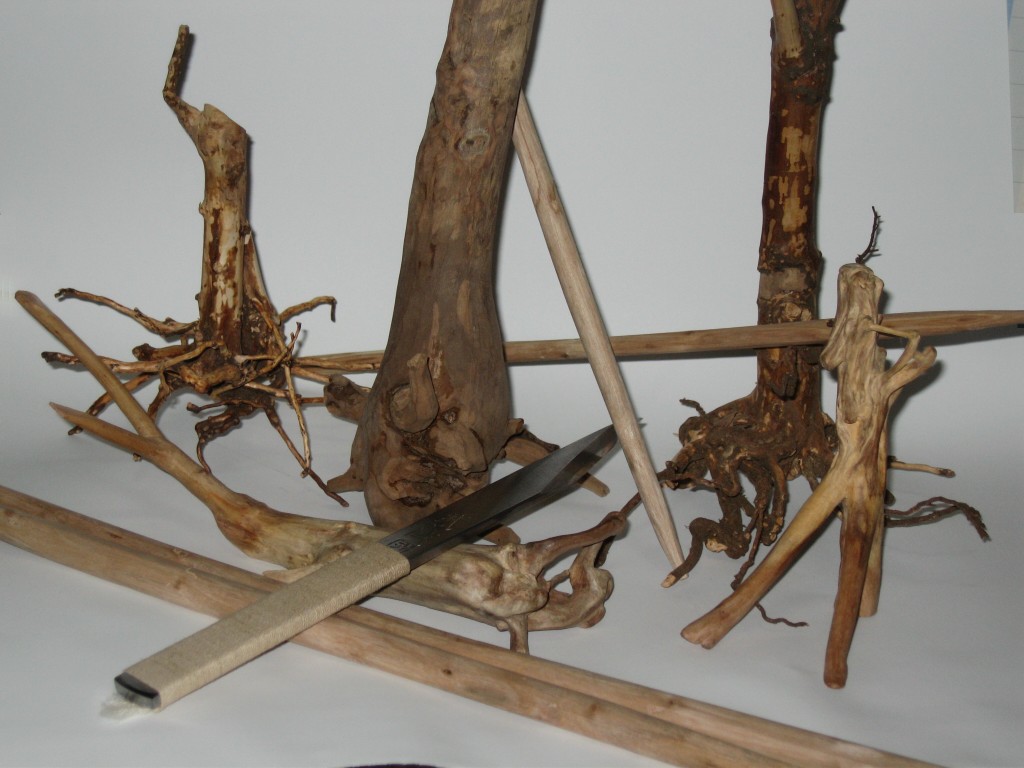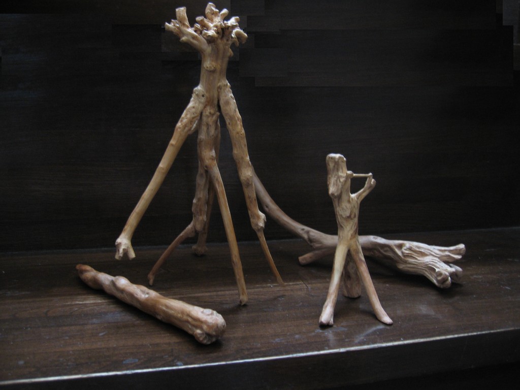 ここまでは「ツツジ」の枯れ木であれこれやってみたけど「ツゲ」の枯れ木を見つけた、で同じように泥を落とし、皮を省いて・・。!