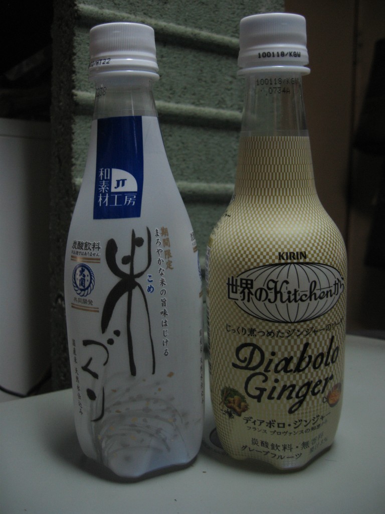 写真左の「米づくり」これどう見ても日本酒にしか見えないけど「炭酸飲料、*お酒ではありません」これを持って、